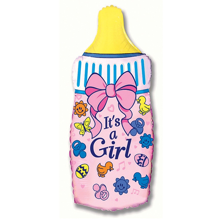 Шар (14»/36 см) Мини-фигура, Бутылочка для девочки, Розовый, 1 шт.