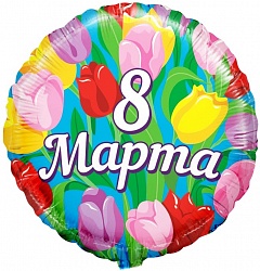 Шар (18»/46 см) Круг, 8 марта, на русском языке, 1 шт.