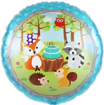 Шар (18»/46 см) Круг, Лесные зверята, Голубой, 1 шт.