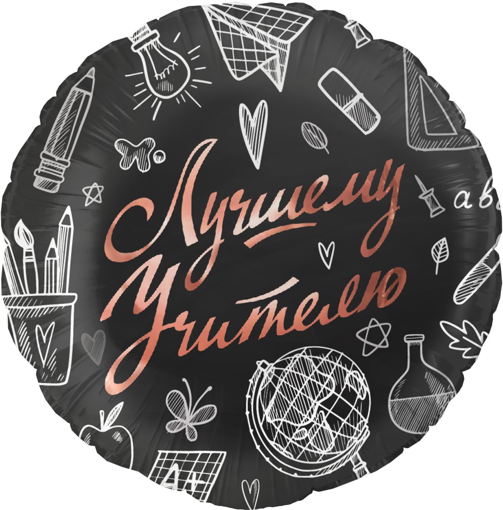 Шар (18»/46 см) Круг, Лучшему Учителю, Черный, 1 шт. в уп.