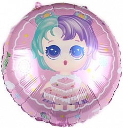 Шар (18»/46 см) Круг, Модная кукла (разноцветные локоны), Нежно-розовый, 1 шт.