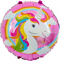 Шар (18»/46 см) Круг, Радужный единорог, Розовый, 1 шт.