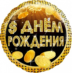 Шар (18»/46 см) Круг, С Днем Рождения! (деньги), в упаковке 1 шт.