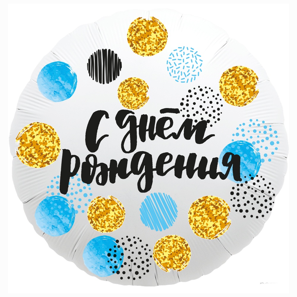 Шар (18»/46 см) Круг, С Днем Рождения (конфетти), Белый, 1 шт.
