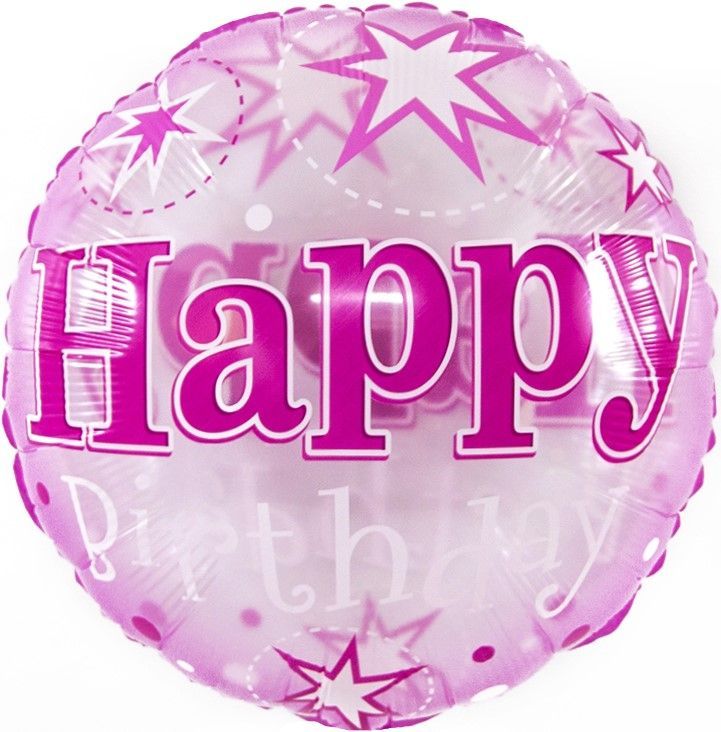 Шар (18»/46 см) Круг, С Днем Рождения (розовые звезды), Прозрачный, 1 шт.