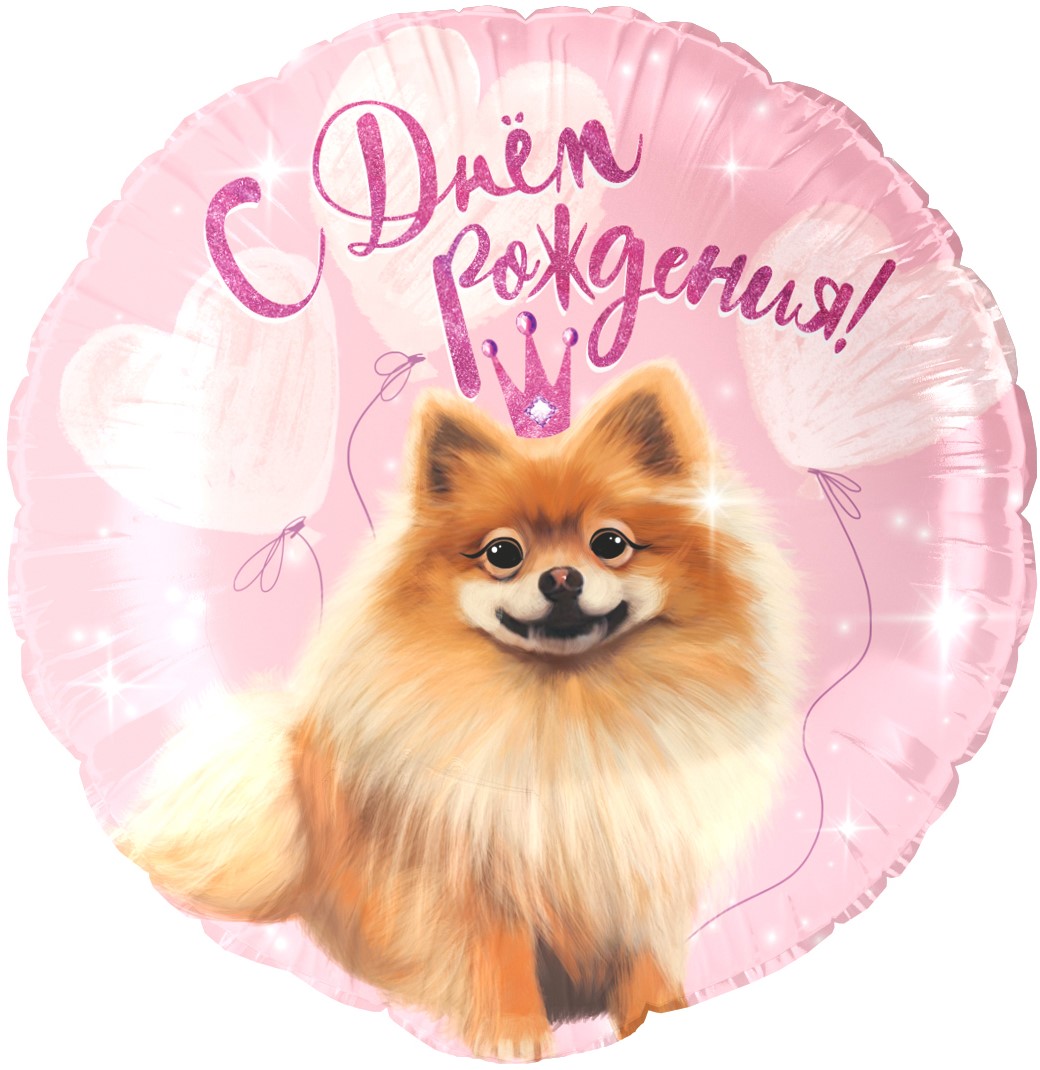 Шар (18»/46 см) Круг, С Днем Рождения! (шпиц), 1 шт. в уп.