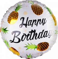 Шар (18»/46 см) Круг, С Днем рождения! (желтые ананасы), 1 шт.