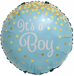 Шар (18»/46 см) Круг, С Рождением Мальчика (золотое конфетти), Голубой, 1 шт.