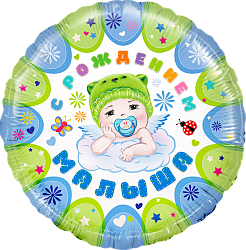 Шар (18»/46 см) Круг, С рождением малыша!, Голубой, в упаковке 1 шт.