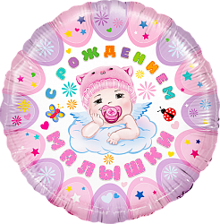 Шар (18»/46 см) Круг, С рождением малышки!, Розовый, в упаковке 1 шт.