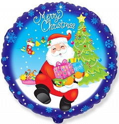 Шар (18»/46 см) Круг, Санта с подарками, Синий, 1 шт.