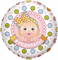 Шар (18»/46 см) Круг, Я родилась (девочка), на русском языке, 1 шт.