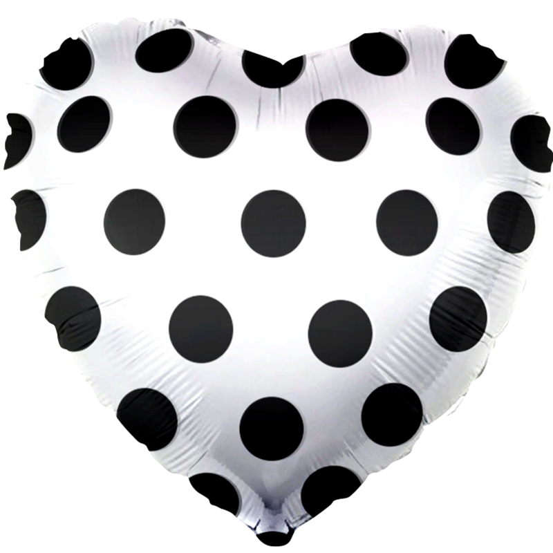 Шар (18»/46 см) Сердце, Черные точки, Белый, 1 шт.