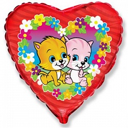 Шар (18»/46 см) Сердце, Коты с цветами, Фуше, 1 шт.