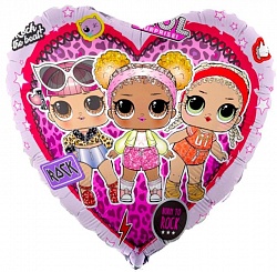 Шар (18»/46 см) Сердце, Кукла ЛОЛ (LOL), Стильные подружки, Розовый, 1 шт.
