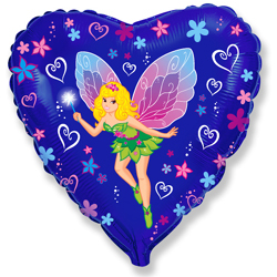 Шар (18»/46 см) Сердце, Фея, Голубой, 1 шт.