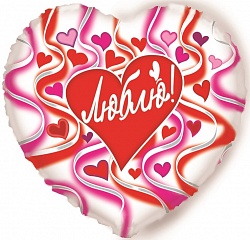 Шар (18»/46 см) Сердце, Люблю (сердечки), на русском языке, 1 шт.