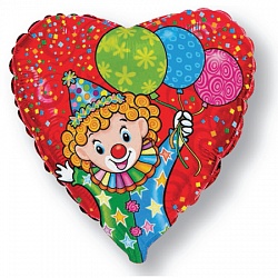 Шар (18»/46 см) Сердце, Счастливый клоун, Красный, 1 шт.