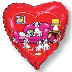 Шар (18»/46 см) Сердце, С Днем рождения (далматинцы), Красный, 1 шт.