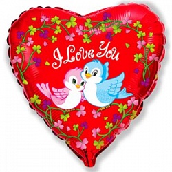 Шар (18»/46 см) Сердце, Влюбленные птички, Красный, 1 шт.