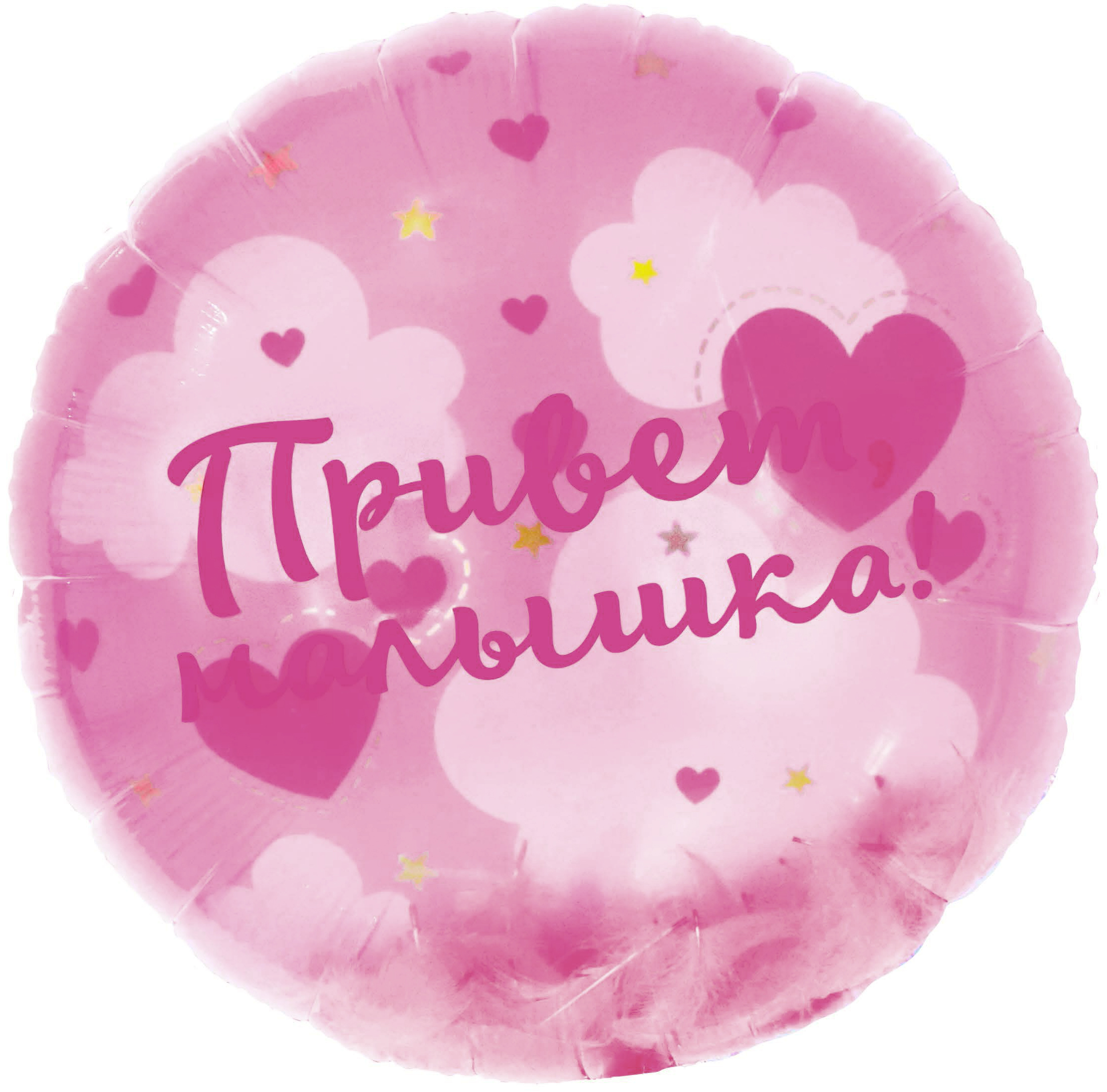 Шар (20»/51 см) Круг, Панорамный, Привет, Малышка! (воздушные перья), 1 шт. в уп.