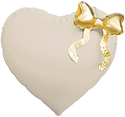 Шар (22»/56 см) Сердце, Золотой бант, Кремовый, Сатин, 1 шт. в уп.