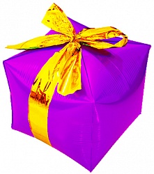Шар (28»/71 см) Куб, Подарок с бантиком, Фуше, 1 шт.