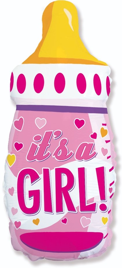 Шар (31»/79 см) Фигура, Бутылочка для девочки (сердечки), Розовый, 1 шт.