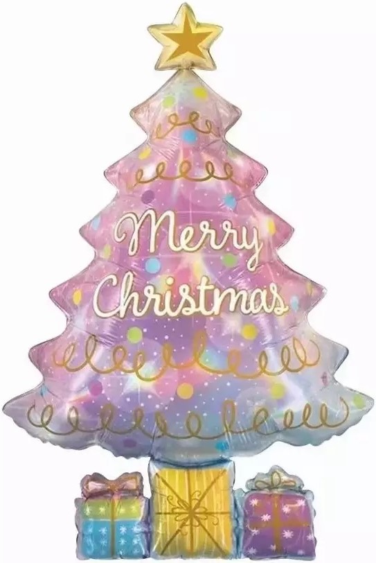 Шар (31»/79 см) Фигура, Новогодняя елочка с подарками, 1 шт.