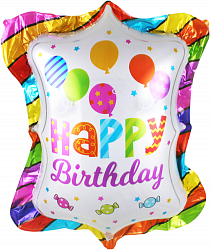 Шар (31»/79 см) Фигура, С Днем Рождения (шарики и конфеты), 1 шт.