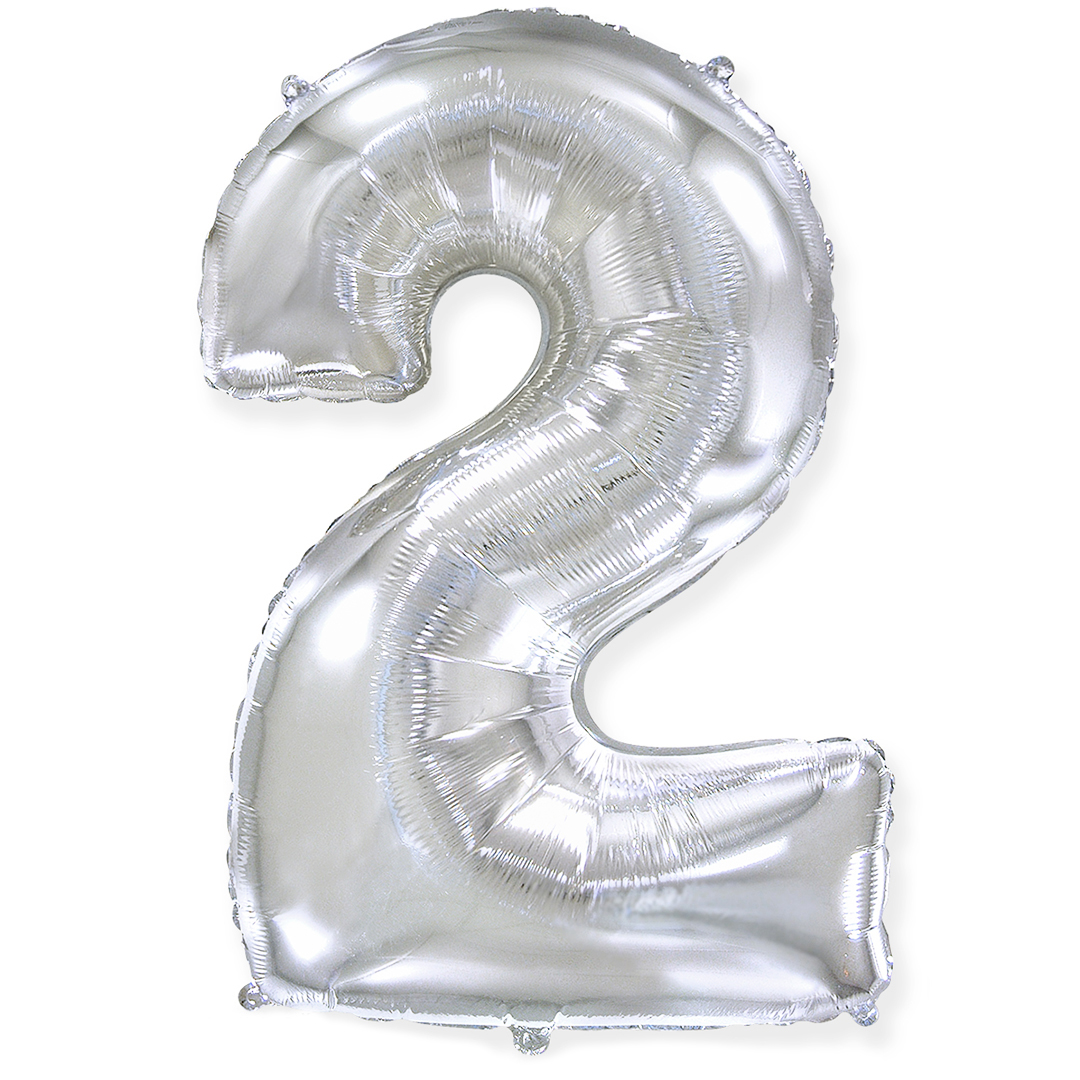 Шар (32»/81 см) Цифра, 2, Серебро, 1 шт. в упак.
