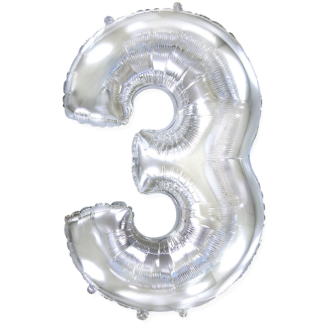Шар (32»/81 см) Цифра, 3, Серебро, 1 шт. в упак.