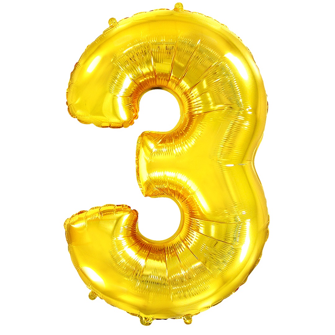 Шар (32»/81 см) Цифра, 3, Золото, 1 шт. в упак.