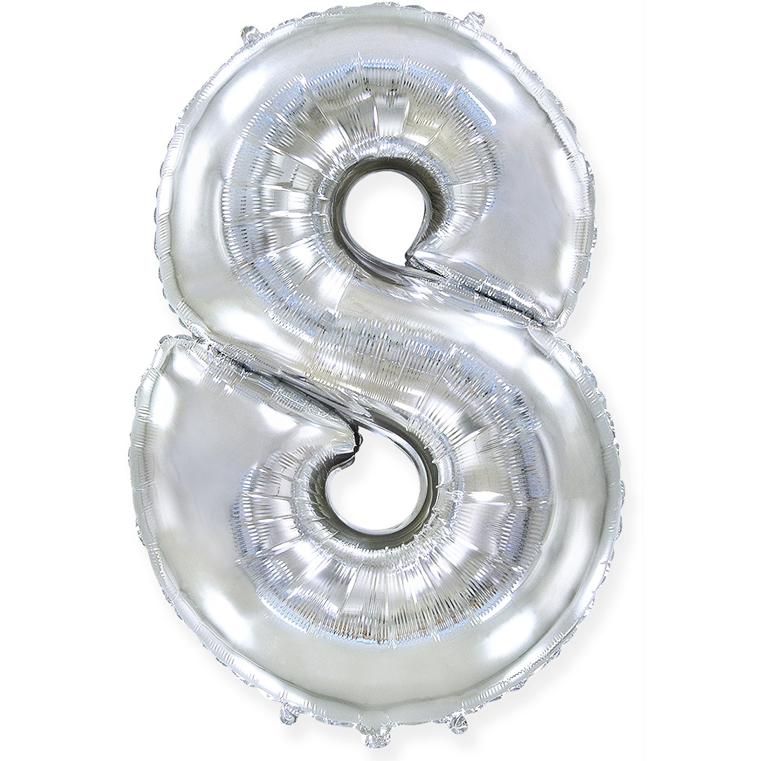 Шар (32»/81 см) Цифра, 8, Серебро, 1 шт. в упак.