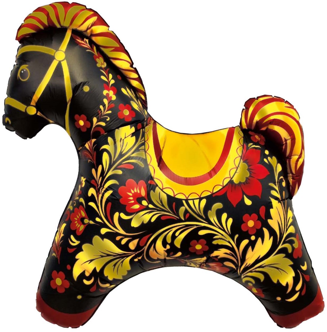 Шар (32»/81 см) Фигура, Лошадка Золотая роспись, 1 шт. в уп.