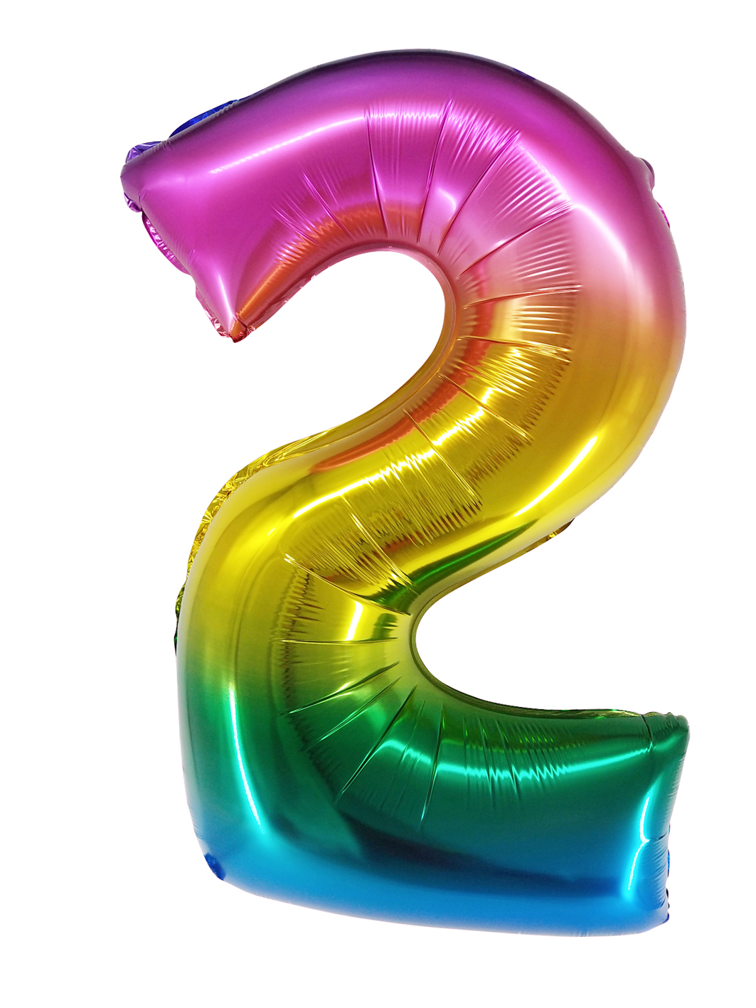 Шар (34»/86 см) Цифра, 2, Радужный, Градиент, 1 шт. в упак.