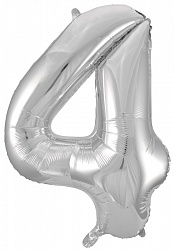 Шар (34»/86 см) Цифра, 4, Серебро, 1 шт.