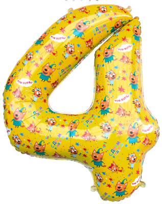 Шар (34»/86 см) Цифра, 4 Три Кота, Желтый, 1 шт. в упак.