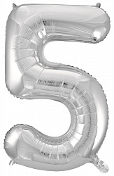 Шар (34»/86 см) Цифра, 5, Серебро, 1 шт.
