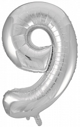 Шар (34»/86 см) Цифра, 9, Серебро, 1 шт.