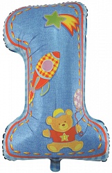 Шар (34»/86 см) Цифра, Первый день рождения, Мальчик, Голубой, 1 шт.