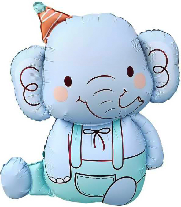 Шар (35»/89 см) Фигура, Слоник в колпачке, Голубой, 1 шт. в уп.