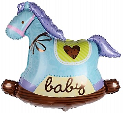 Шар (36»/91 см) Фигура, Лошадка качалка, Голубой, 1 шт.