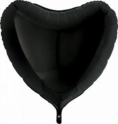 Шар (36»/91 см) Сердце, Черный, 1 шт.