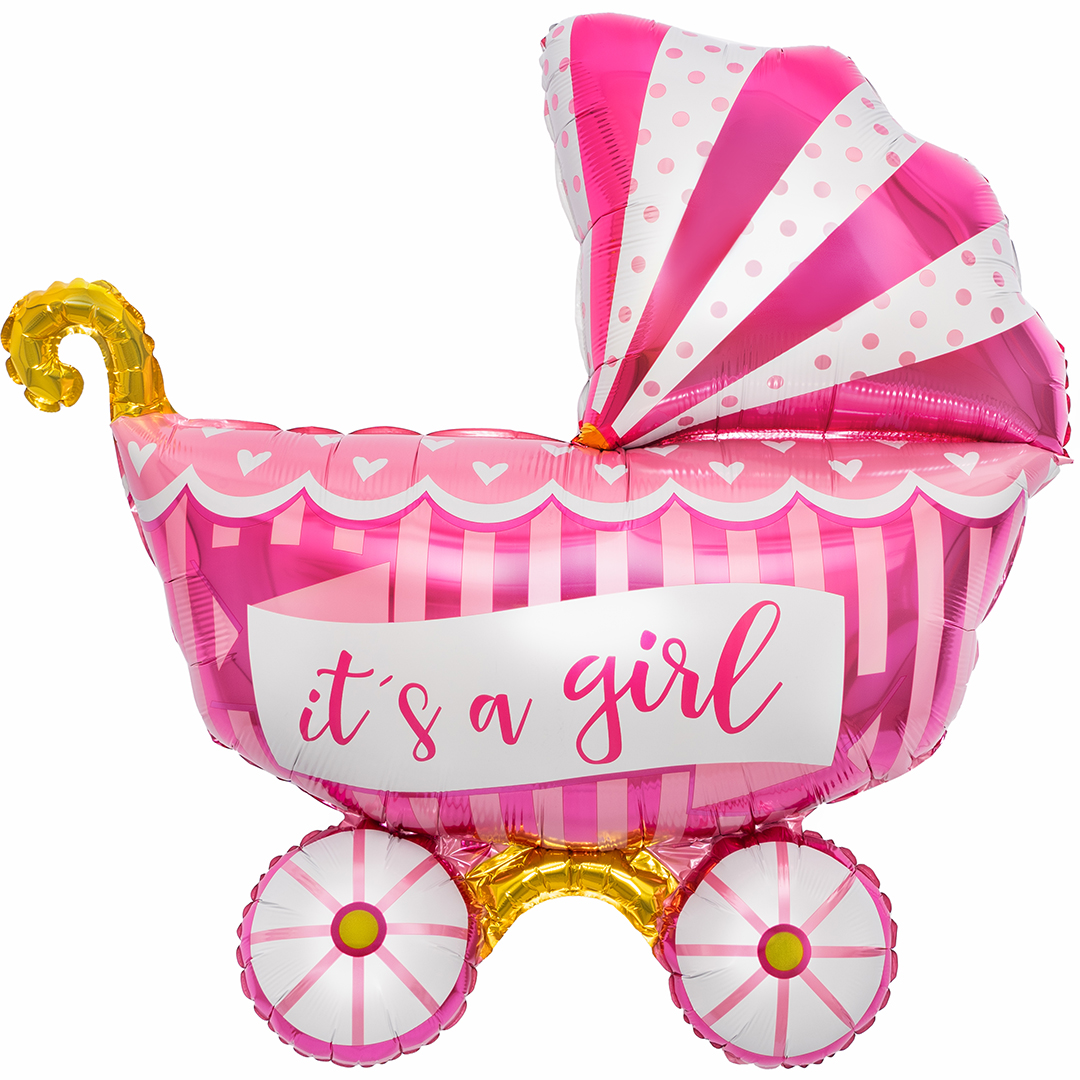 Шар (37»/94 см) Фигура, Коляска для девочки, Розовый, 1 шт. в уп.