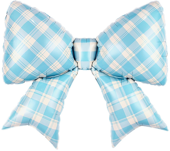 Шар (38»/97 см) Фигура, Бант, Клетка Виши, Голубой, Сатин, 1 шт. в уп.