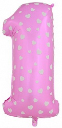 Шар (40»/102 см) Цифра, 1, Розовый, 1 шт.