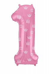 Шар (40»/102 см) Цифра, 1, Slim, Короны, Розовый, в упаковке 1 шт.