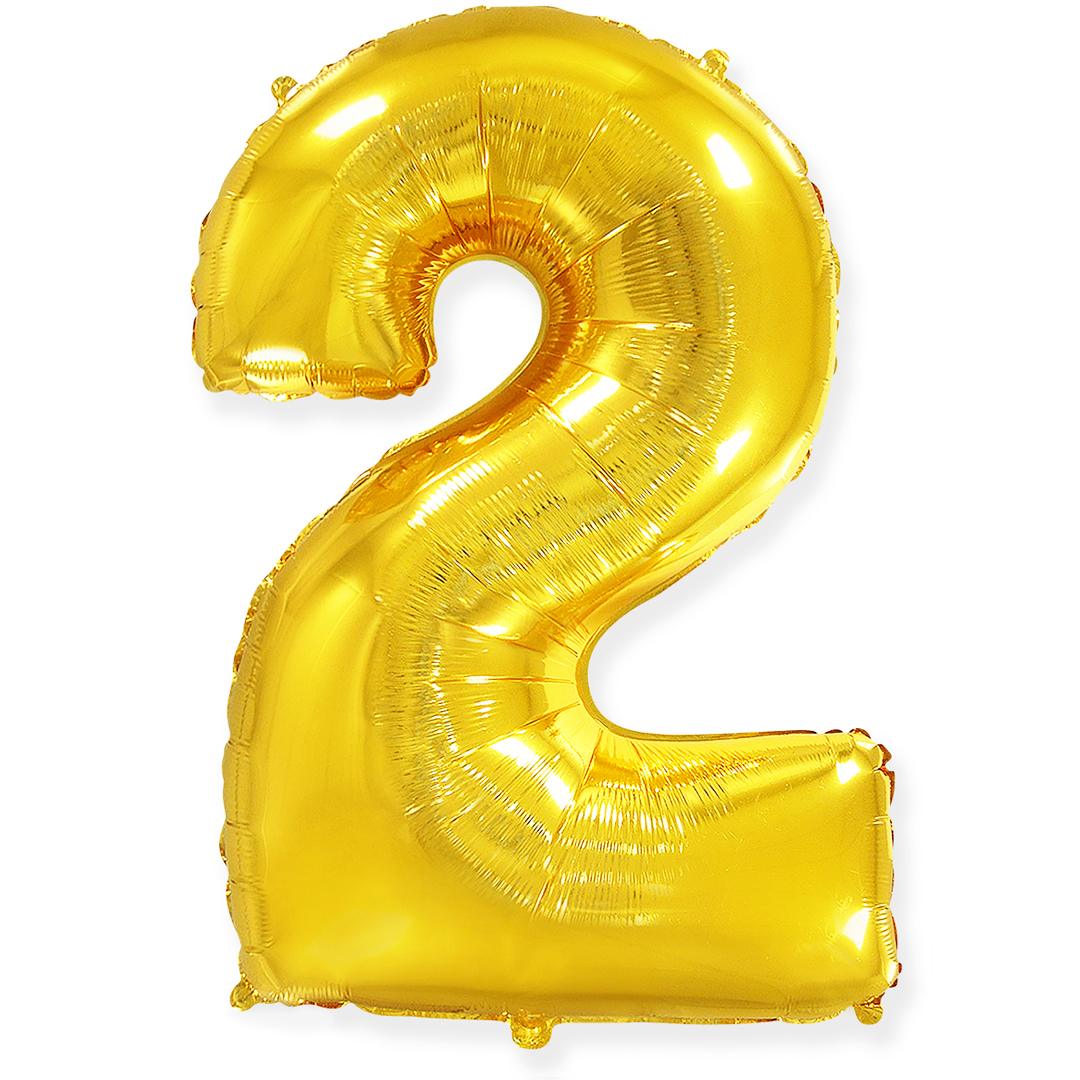 Шар (40»/102 см) Цифра, 2, Золото, 1 шт. в упак.