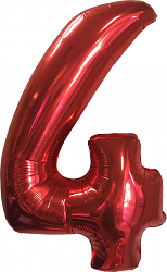 Шар (40»/102 см) Цифра, 4, Красный, в упаковке 1 шт.